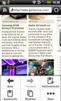 رابط کاربری اصلا در نگاه اول به چشم نمی آید. با بار شدن صفحه ، تمامی آنچه به نمایش در می آید ، نوار آدرس و کلید Bookmark در بالای صفحه است.با بزرگنمایی بر روی صفحه حتی این خط هم ناپدید می شود (برای مشاهده مجدد آن باید کلید منو را بفشارید و یا به سمت بالای صفحه پیمایش کنید).