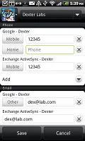 صفحه ویرایش مخاطبین هم به طرزی زیبا آراسته شده است و دقیقا همانند Hero است.هیچ کلید + مانندی برای افزودن جزئیاتی از یک نوع خاص وجود ندارد و تنها یک کلید حذف جزئیات در آن دیده می شود.این کار باعث می شود که مقداری در فضا صرفه جویی شود اما در هر بار که بخواهید جزئیات جدیدی به مخاطب بیافزایید باید به سمت پایین پیمایش کنید.