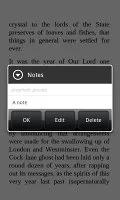 Reader کتاب را به بهترین حالت برای صفحه نمایش تنظیم کرده و در صورتیکه متن ریز یا درشت باشد ، امکان تغییر اندازه فونت را هم به شما می دهد. امکان افزودن Bookmark ، برجسته سازی قسمتی از متن با رنگ های متفاوت و یادداشت برداری هم وجود دارد. بعد از انجام این کار در مراجعات بعدی به کتاب می توانید از طریق منو به آن ها دست یابید.
