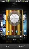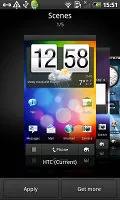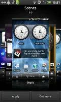 رابط کاربری HTC Sense از صحنه ها – شش تنظیم متفاوت صفحه اصلی – استفاده می کند . هر صحنه تصویر پس زمینه و ویجت های موجود در صفحه اصلی را تغییر می دهد . برای مثال صحنه Work از ویجت سهام استفاده می کند در حالیکه صحنه Social از ویجت Twitter بهره می گیرد.