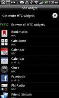 در هنگام افزودن یک ویجت به صفحه اصلی ، دو گزینه به شما نمایش داده می شود:Android Widgets و HTC Widgets. نسخه های مختلف ، اندازه های مختلف و با ظاهری متفاوت (برای مثال 12 ساعت متفاوت در این گوشی وجود دارد،درست خواندید :12 نوع ساعت) در این گوشی تعبیه شده اند.