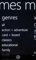 بخش نرم افزار ها با یک نرم افزار برجسته آغاز میشود، سپس دسته بندی ها را داریم (که دو گزینه ی «همه» و «رایگان» را هم شامل میشود)، بعد افزارهای برتر، و در آخر فهرستی از افزارهای جدید و فهرست طولانی تری از افزار های پرطرفدار.بخش آهنگ در واقع همان مرکز خرید Zune است. ساختارش مشابه بخش نرم افزارهاست. ابتدا، هنرمند برجسته ی هفته، سه هنرمند برجسته ی دیگر، فهرستی از تازه ها، و در آخر آلبوم ها و ژانرهای برتر.بخش ژانرها خود به دو بخش تقسیم میشود. تازه ها و برترین خواننده ها/آلبوم ها/ آهنگ ها/ لیست آهنگ ها. هر آهنگ یک پیش نمایش سی ثانیه ای دارد (درست مثل iTunes). اگر یک رمز عبور Zune داشته باشید میتوانید یک آهنگ کامل را پخش کنید درست مثل زمانی که با Zune player کار میکنید (هزینه ی این تنها 10 دلار در ماه است)