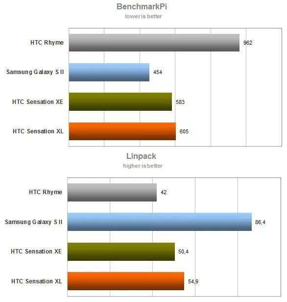 از سوی دیگر Linpark بر اساس ازمون های ارزیابی ابرکامپیوتر ها طراحی شده است و بنابراین از تمامی توان پردازنده ها بهره می گیرد، از گوشی Rhyme آزمون تک هسته ای و از بقیه ی گوشی ها آزمون دو هسته ای به عمل آورده شد .
