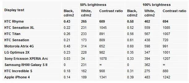 و این هم نتایج آزمون همیشگی ما در ارزیابی روشنایی صفحه نمایش هاست. همانطور که می بینید Rhyme عملکرد مناسبی در برابر سایر رقبا از خود به جای می گذارد.