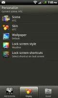 انتخاب صحنه ها اکنون از یک فضای سه بعدی انجام می گیرد اما به غیر از این ، کارآیی آن ها به همان شکل پیشین باقی مانده است. امکان تغییر دادن صحنه های پیش فرض وجود دارد و در صورت نیاز می توانید صحنه های دیگری را هم از HTC Hub دانلود نمایید . سوییچ بین صحنه ها به چند ثانیه زمان نیاز دارد اما قابلیت های سفارشی سازی بسیاری را در اختیار کاربران قرار می دهد. حالت های شخصی و تجاری بسیاری از رقبا در برابر این قابلیت گوشی های HTC بسیار ناچیز محسوب می شود.HTC Sense گزینه دیگری به نام Skins نیز برای سفارشی سازی رابط در اختیار کاربر قرار می دهد. هر کدام از این پوسته ها ، شکل و ظاهر اغلب کلید های مجازی ، نرم افزار ها ، منوها و دیگر آیتم ها را تغییر می دهند. هر یک از آن ها با یک عکس پس زمینه منحصربفرد عرضه می شوند و از مجموعه رنگی متفاوتی برای عناصر متفاوت رابط استفاده می کنند. آن ها می توانند بر روی فاکتورهایی چون صفحه اصلی ، نوع قفل شدن صفحه و همین طور ویجت ها نیز تاثیر بگذارند.