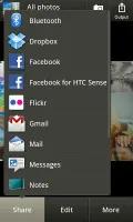 به اشتراک گذاری عکس ها از طریق HTC Rhyme بسیار ساده است ، تنها کافی است بر روی کلید Share کلیک کرده و فایل مورد نظرتان را از طریق بلوتوث یا سایت هایی چون Flicker ،FaceBook ، Peep ، Picasa و یا از طریق Gmail ، HTC mail و … به اشتراک بگذارید.امکان ارسال مستقیم ویدیوها به یوتیوب نیز وجود دارد. و در آخر کلید Connected media به شما اجازه می دهد که از سرور مجهز به DLNA خودتان به پخش محتویات چند رسانه ای بپردازید.امکان حذف گروهی عکس ها وجود دارد اما امکان Copy و Paste کردن آن ها را به صورت گروهی ندارید.