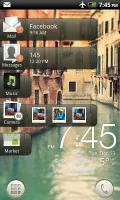 هفت صفحه اصلی تمامی چیزی است که در اختیار شما قرار داده می شود و گزینه ای هم برای حذف یا افزودن صفحه ای دیگر قرار داده شده است. با چنین تعداد ویجت هایی به نظر می رسد که به تمامی آن ها نیاز خواهید داشت.رابط کاربری HTC Sense از صحنه ها – شش تنظیم متفاوت صفحه اصلی – استفاده می کند . هر صحنه تصویر پس زمینه و ویجت های موجود در صفحه اصلی را تغییر می دهد . برای مثال صحنه Work از ویجت سهام استفاده می کند در حالیکه صحنه Social از ویجت Twitter بهره می گیرد.