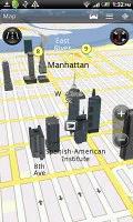 بزرگنمایی با نیشگون یا Pinch Zooming هم در حالت دو و هم در حالت سه بعدی کار می کند و علاوه بر آن امکان فعال کردن قطب نمای دیجیتال را هم دارید. در ابتدا این قطب نما عملکرد پرتغیری دارد اما این کار تنها برای اجتناب از لرزش های شدید صورت می پذیرد . از طرفی قطب نما ها دقیق ترین ابزار مسیریابی در دنیا نیستند.