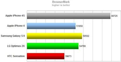 مرورگر قسمت دیگری است که در آن آیفون می تواند قدرت خود را به رخ رقبا بکشد.در هر دو ازمون SunSpider و BrowserMark گوشی در بهترین شکل ممکن ظاهر شده و برترین گوشی های دو هسته ای آندرویدی را پشت سر نهاد.البته این عمل را به جز سخت افزار قوی باید به نبوغ نرم افزاری اپل نیز مرتبط دانست.