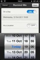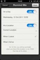 اگر می خواهید در همان روز اتفاق افتادن رویداد از آن مطلع شوید ، تنها انتخاب تاریخ و ساعت کفایت می کند. قابلیت نوآورانه ای در این بخش تعبیه شده است که بر حسب مکان کار می کند. می توانید محلی را از دفترچه تلفن تان یا محل فتان را انتخاب کرده و سپس مشخص کنید که در هنگام رسیدن به آن نقطه و یا عزیمت از آن محل، یادآوری کننده برای شما به نمایش درآید.