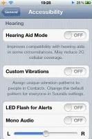اپل گزینه هایی هم برای کسانی که دچار ضعف های جسمانی هستند به سیتستم عاملش افزوده است.اکنون آیفون از فلاش LED برای هشدارها استفاده کرده و امکان ایجاد الگوهای اختصاصی ویبره برای هر یک از کاربران را نیز مهیا می سازد.