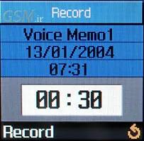 گوشی قابلیت ذخیره ی مکالمه های 30 ثانیه ای را دارد ، شما 5 فایل صوتی را می توانید ایجاد نمائید که جمعاً 100 کیلوبایت به این بخش اختصاص داده شده است .