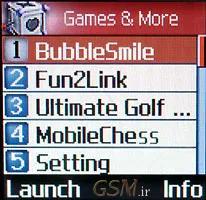 4 بازی هم در گوشی موجود می باشد که نام های آن Ultimate Golf , Fun 2 Link , Bubble Smile و Mobile Chess می باشد .