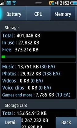 مگابایت حافظه در دسترس کاربر ، یک گیگابایت فضا برای ذخیره سازی