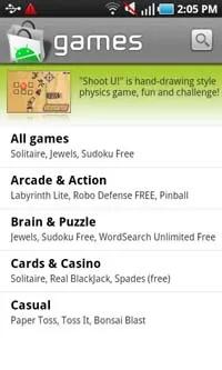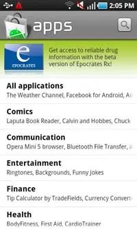نخستین صفحه Market ، چندین نرم افزار برجسته را نمایش می دهد. Market بازی ها و نرم افزارها را در دو لبه مجزا سازماندهی کرده و هر لبه ، زیرمجموعه های خاص خود را دارد(برای مثال نرم افزارهای مالی ، بازی های انفرادی و …). در هر زیرمجموعه می توانید ، برترین نرم افزارهای رایگان یا نرم افزارهای جدید عرضه شده را مشاهده نمایید.