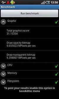 در آخر ما آزمون های معمول را هم بر روی Samsung i9000 Galaxy S انجام دادیم و از اینکه بهترین نتایجی را که تا به حال دیده ایم به دست آوردیم اصلا شگفت زده نشدیم. پردازنده یک گیگاهرتزی Hummingbird فاصله زیادی با پردازنده Snapdragon به کار رفته در SE Xperia X10 و HTC Desire ندارد اما به هر حال نسبت به آن ها برتر است.