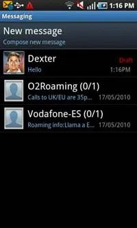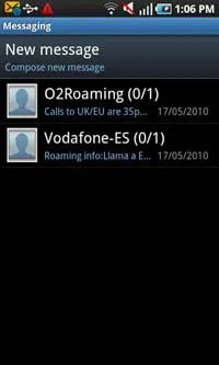 با یک نگاه می توان فهمید که بخش پیام رسانی SMS و MMS بسیار ساده است. هیچ پوشه ای در این بخش وجود ندارد و تنها کلید New message در آن به چشم می خورد. گرچه همه چیز به این سادگی هم نیست و لیست سازماندهی شده ای از پیام های دریافتی تان به صورت حباب ها در زیر آن نمایش داده می شود.
