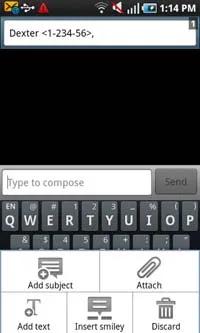 برای افزودن گیرنده پیام ، باید نام وی را تایپ نموده و یا وی را از میان مخاطبین انتخاب نمایید.گوشی به طور خودکار به پیشنهاد دادن اسامی می پردازد و به راحتی با کلیک بر روی آن ها می توانید یکی را برگزینید.