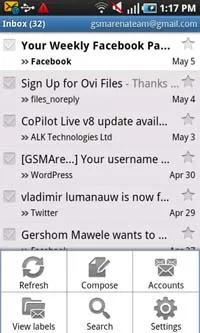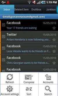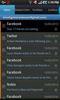 همچنین نرم افزار استاندارد ایمیل هم در این گوشی وجود دارد که می تواند چندین حساب کاربریPOP یا IMAP را به طور همزمان مدیریت نماید. هنوز هم می توانید به پیام هایی که آنلاین ایجاد شده اند در فولدرهای اصلی شان، در کنار پیام هایی که در inbox ، drafts و یا Sent قرار دارند دست پیدا کنید.