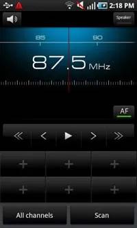 Samsung I9000 Galaxy S به یک رادیو اف ام با RDS هم مجهز است. رابط این نرم افزار ساده است و با چرخاندن لغزنده ای که در نظر گرفته شده است می توانید بین ایستگاه ها منتقل شوید. امکان ذخیره تا شش ایستگاه در لیست علاقمندی ها هم در نظر گرفته شده است. می توانید در حالت بلندگو هم به رادیو گوش کنید اما در این حالت هم باید هدست به گوشی متصل باشد.