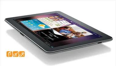 موزیک پلیر Galaxy Tab با رابطی بسیار مناسب عرضه شده است . شما در این موزیک پلیر می توانید موزیک ها و آهنگ های خود را بر اساس Album ، Artist ، Song ، Genre ، Folders ، Composer و یا سال طبقه بندی کنید . همچنین امکان ساخت Playlist نیز وجود خواهد داشت و دسترسی به لیست پخش های اخیر نیز وجود دارد . امکان جستجو نیز در این قسمت فعال می باشد و این امکان برای آن دسته از عزیزان که حجم اطلاعات موزیک بالایی را ذخیره می نمایند بسیار سودمند خواهد بود .