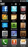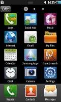 منو اصلی از ساختاری مسطح استفاده می کند و تمامی آیتم های در دسترس در سه صفحه از آیکن ها جای داده شده اند. در صورت نیاز می توانید تعداد آن ها را تا هفت صفحه افزایش دهید. آیکن ها در نمای مشبک 3 x 4 به نمایش در می آورند و می توانید به هر طریقی که می خواهید آن ها را مرتب کرده و حتی آیکن ها را از صفحه ای به صفحه دیگر حرکت دهید.