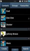 می توانید با استفاده از پیمایش حرکتی یا الفبایی به جستجوی لیست مخاطبین بپردازید.امکان جستجوی مخاطبین با تایپ تدریجی اسامی هم در این دفترچه تلفن تعبیه شده است.