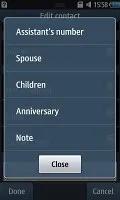 فیلدهای اطلاعاتی زیادی وجود دارد که به مخاطب می توان تخصیص داد و این گزینه ها با وجود تعداد یادشان هنوز هم مرتب باقی می مانند. همه انواع این فیلدها بخوبی لیست شده اند و علامت + در کنار آنها برای افزودن یک فیلد از آن نوع به کار می رود. با فشردن علامت منفی موجود در زیر فیلد ، آن فیلد حذف خواهد شد.