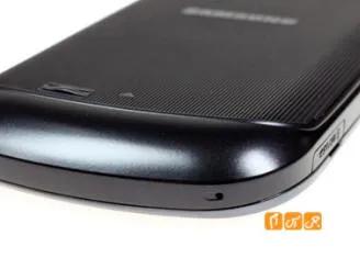 در کناره ی پایینی گوشی ، ورودی میکروفون صدا تنها چیزی است که به چشم می خورد .با خارج کردن کاور پشتی گوشی به باتری و جای سیم کارت آن می رسیم . این گوشی دارای یک باتری 1350 میلی آمپری از نوع Li-Ion می باشد . در مورد عمر باتری آن نباید انتظارات فراوانی داشت زیرا همانطور که می دانید آندروید تشنه ی باتری است . Galaxy Fit یک روز باتری جهت کار مداوم و سخت با گوشی را تامین می کند و در شرایط استاندارد و کارکرد معمول و استاندارد 2 تا 3 روز شارژ دارد .