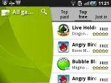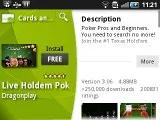 ساختار Android Market بسیار ساده است ، نرم افزارهای برجسته در بالا قرار دارند و در زیر آن ها سه بخش Application ، Games و Downloads است.میانبری هم برای آغاز جستجو در این قسمت دیده می شود.
