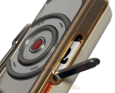 اگر به شكل گوشی دقت كنید ، یك قاب برنزی رنگ قسمت آیینه شكل را