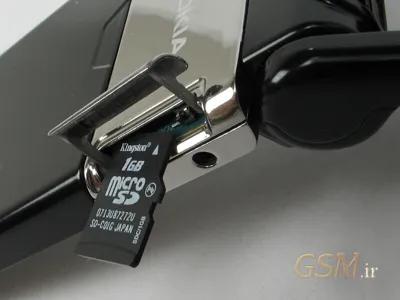 در کنار سمت چپ گوشی محل قرارگیری کارت حافظه micro SD با پوشش لاستیکی است که البته بیرون آوردن و جازدن کارت حافظه در شکاف چنان باریکی ، کار نسبتاً سختی است. در کنار آن بند محل اتصال شارژر قرار گرفته است.