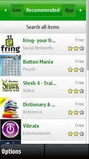 ساختار نرم افزار Ovi Store بسیار ساده است . لیستی شامل نام و لوگوی هر نرم افزار ، دسته ای که در آن قرار می گیرد ، قیمت و رتبه بندی آن در این نرم افزار مشاهده می شوند.