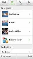 می توانید نرم افزارهای موجود در Ovi Store را با دسته بندی هایی چون نرم افزارها ، بازی ها ، محتویات صوتی و تصویری و یا شخصی سازی مشاهده نمایید . روش دیگر برای انجام این کار استفاده از مجموعه هایی چون Go Green ، Tools For Professional ، Home screen Apps ، Highly Addictive Games و Web TV است.