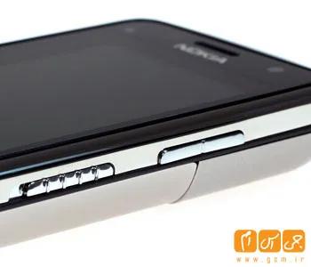 در کناره پایینی پورت MicroUSB و سوکت صوتی 3.5 میلی متری به همراه پورت اختصاصی شارژر نوکیا و دهنی گوشی خودنمایی می کنند.