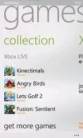 بازی ها خود در بخش Collection قرار دارند. این بخش چیز زیادی برا گشت و گذار ندارد، بازی های نصب شده در یک شبکه ی مربع مربع به همراه گزینه ی " بازی های بیشتر" که در واقع لینکی به فروشگاه ویندوز است دسته بندی شده اند.