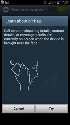 چیزهایی که ما را تحت تأثیر قرار داده است گزینهی آماده بهکار ماندن گوشی با نگاه به آن و گزینهی تماس مستقیم است ویژگی تماس مستقیم به شما این امکان را میدهد تا بتوانید شمارهگیری را با بردن گوشی در کنار گوش خود در زمانی که در دفترچهی تلفن خود جستجو انجام میدهید یا در حال نوشتن و یا خواندن یک پیام کوتاه هستید انجام دهید.