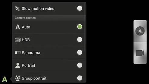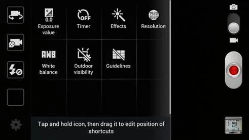 میخواهیم نگاهی به HTC One X بیندازیم در سمت راست گزینههایی از جمله دکمهی افکتها، دکمهی عکاسی، دکمهی فیلمبرداری و یک میانبر به گالری وجود دارد در قسمت چپ ضامن تنظیمات فلش،تنظیمات کلی و حالت عکاسی وجود دارد