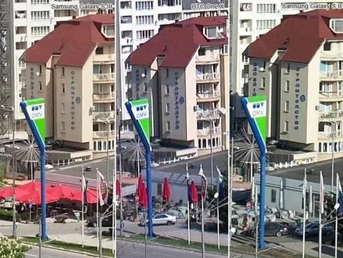 بنابرین اجازه دهید مستقیماً به کیفیت عکسها بپردازیم به این نکته توجه کنید که آب و هوا برای دو مدعی یکسان نبود (اما وضعیت نور بهاندازه کافی مشابه بود تا عکسها قابل مقایسه شوند.) ما Galaxy S II را نیز در آزمایش برای اندازهگیری بهتر اضافه کردیم همانطور که در عکسها مشاهده میکنید در یک نور خوب Galaxy S III عکسهایی با جزئیات بیشتری نسبت به نسل قبل خود و HTC One X تهیه میکند. الگوریتم پرچمدار جدید سامسونگ بسیار کاملتر است این گوشی عکسهایی با رنگهای مصنوعی کمتر و جزئیات بیشتر تهیه میکند در حالی که نویز را نیز تحت کنترل دارد. از طرف دیگر One X عکسهایی به اندازه کافی خشنتر با شدت رنگ بیشتر تهیه میکند و به همان نسبت در حذف نویزها زیاد موفق نیست.