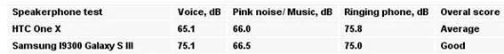 ما Samsung Galaxy S III و HTC One X را در آزمایش کارآیی صدای بلند در کنار یکدیگر قرار دادیم Galaxy S III بهترین رتبه در تمام تستها را به دست آورد ولی One X یک جایگاه متوسط را به دست آورد.