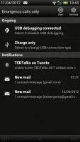 یک لیست بلند بالا برای ارتباط با PC داریم .مانند: فقط شارژ، درایو دیسکی(ذخیره بال)، سینک HTC ، ارتباط USB (استفاده از گوشی به عنوان مودم) و محل گذر اینترنت، (گوشی از اینترنت کامپیوتر استفاده می کند). حالت فقط شارژ و دیسک درایو یک آیکون بزرگ دارند و به علت اینکه زیاد استفاده می شوند خیلی خوب است.