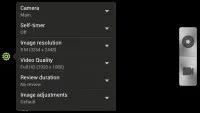 رابط دوربین هم برای عکس برداری و هم برای فیلم برداری استفاده میشود. در عکس زیر مشاهده می کنید که سمت راستی شامل کلیدهای جلوه دادن، کلید شاتر ، کلید شروع فیلم برداری و یک کلید در سمت چپ تنظیمات فلش، تنظیمات عمومی و حالت عکس برداری (که در ادامه توضیح داده می شود) وجود دارد.