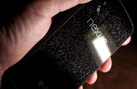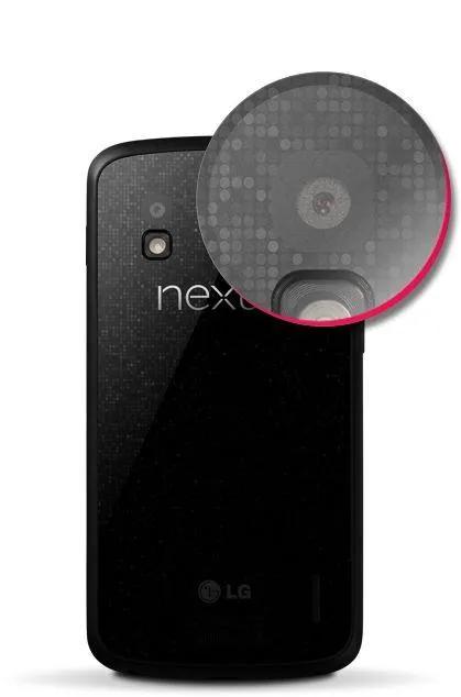 در پشت گوشی نیز از پوشش شیشهای ضدخش استفاده شده است و هیچ نوع درپوشی دیده نمیشود. این بدان معنا است که به باتری هیچ گونه دسترسی نخواهید داشت. در بالا سمت چپ دوربین 8 مگاپیکسلی و فلاش LED آن را میبینیم که درست در بالای نام Nexus واقع شدهاند. الجی لوگوی خود را در پایین گوشی و در کنار خروجی اسپیکر حک کرده است. طراحی پشت گوشی ما را یاد فیلم ماتریکس و عکس پس زمینهی نکسوس 1 میاندازد. در ابتدا که ما عکسهای منتشر شدهی نکسوس 4 را میدیدیم، مربعهای کوچک به نظر زشت می آمدن که نکسوس 4 را به گوشیهای دسته دوم رنگ و رو رفته شبیه کرده بود، اما وقتی آن را از نزدیک در دست گرفتیم واقعاً از طراحی آن لذت بردیم. طراحی بدنه بسیار عالی و متفاوت بوده و تنها یک خطر وجود دارد. به دلیل اینکه پشت گوشی روکش شیشهای دارد باید بسیار مراقب بود که مشکلی برای آن پیش نیاید.