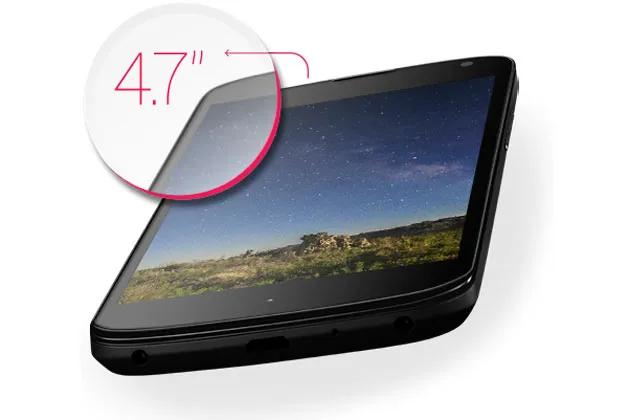 صفحه نمایش به کار رفته در نکسوس4 بسیار شبیه نمونهای است که در الجی Optimus G دیدیم. کیفیت صفحه نمایش نکسوس4 با رزولوشن 768×1280 پیکسل کمی از HD بالاتر است. این صفحه نمایش 4.7 اینچی دارای پنل واقعی IPS Plus بوده و توسط پوشش شیشهای Gorilla Glass2 محافظت میشود.