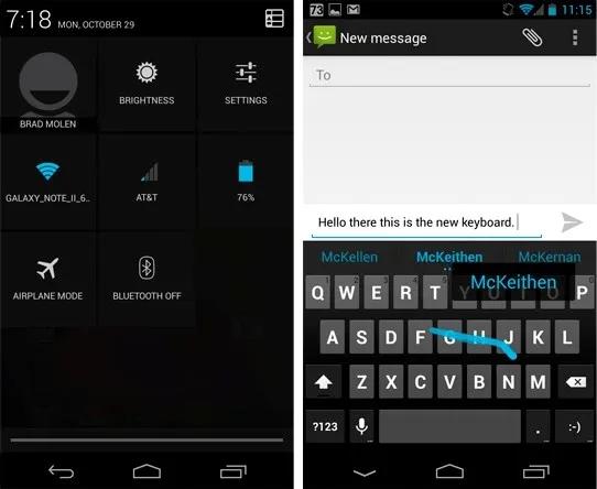 گوگل به صفحهکلید نکسوس4 ویژگی جذابی به نام "Gesture Type" را اضافه کرده است. با استفاده از این ویژگی دیگر در تایپ نیازی نیست که برای هر حرف دست خود را از صفحه کلید بردارید و حرف بعدی را وارد کنید بلکه میتوانید بدون برداشتن دست، روی صفحه کلید بکشید و گوشی از نوع تغییر مسیر انگشت شما کلمه را حدس میزند که انصافاً دقت عمل بالایی را داراست. در هر کجای برنامههای و رابطهای کاربری که باشید با زدن سه ضربه به صفحه نمایش میتوانید آن را بزرگنمایی کرده و از آن به بعد میزان بزرگنمایی را با زوم دو انگشتی تنظیم کنید. دیگر ویژگی دوست داشتنی که از نکسوس4 دیدیم Daydream نام دارد که فقط در آندروید 4.2 وجود دارد. به واسطهی این ویژگی که مشابه Screen Saver است، وقتی شما گوشی را در شارژ یا پایهی مخصوص آن قرار میدهید یکسری از اطلاعات اخیر مانند عکسها، به روز رسانیها، قرار ملاقاتها، اتفاقات مهم و غیره از روی صفحه گوشی عبور میکنند.