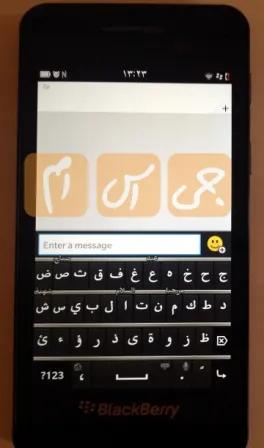 در اینجا همانطور که گفتیم از صفحه کلید فارسی خبری نیست و تنها یک صفحه کلید عربی در اختیار شما قرار دارد اما مورد بحث ما اینجا چیز دیگری است، بلکبری از صفحه کلید طراحی شده خود بسیار رضایت داشت و به آن میبالد (از حق هم نگذریم بازخورد صفحه کلید بسیار خوب بود) اما علاوه بر کارآیی خوب صفحه کلید در هنگام تایپ کردن یک ویژگی جذاب و جدید دیگر به صفحه کلید این گوشی و این سیستم عامل اضافه شده است، در هنگامی که مشغول تایپ کردن هستید گوشی بر اساس جملهای که مشغول تایپ کردن آن هستید لغاتی را به صورت پیشنهادی بالای بعضی از حروف به شما نشان میدهد، اگر شما قصد تایپ کردن همان لغت را دارید تنها کاری که لازم است انجام دهید این است که با همان انگشت شصت خود آن لغت پیشنهادی را به سمت بالا هل دهید با این کار لغت در درون جایی که مشغول تایپ جمله خود هستید وارد میشود، ما این ویژگی را بسیار دوست داشتیم زیرا علاوه بر اینکه لغات بسیار هماهنگی را با جمله در حال تایپ پیشنهاد میداد با این ویژگی جنبه سرگرمی کار نیز در هنگام تایپ اعمال میشد که کاربر را از تایپ کردن خسته نمیکند.