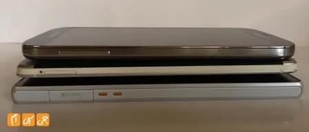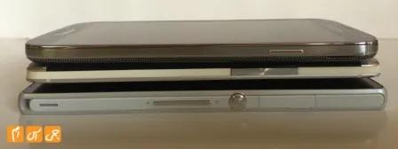 هر سه گوشی اندازه تقریبا بزرگی دارند، اما این اندازههای بزرگ زیاد آزار دهنده نیست، در گوشی HTC One یك انحنا در پشت این گوشی ایجاد شده كه این انحنا به خوش دست یودن گوشی كمك بسیار زیادی میكند، سونی گوشی Xperia Z را كاملا تخت و مستطیلی طراحی کرده، سامسونگ نیز تقریبا همان طراحی Galaxy S3 را در اینجا به کار برده به این صورت كه گوشی ظاهری تقریبا بیضی مانند دارد و لبه های آن كاملا گرد هستند.