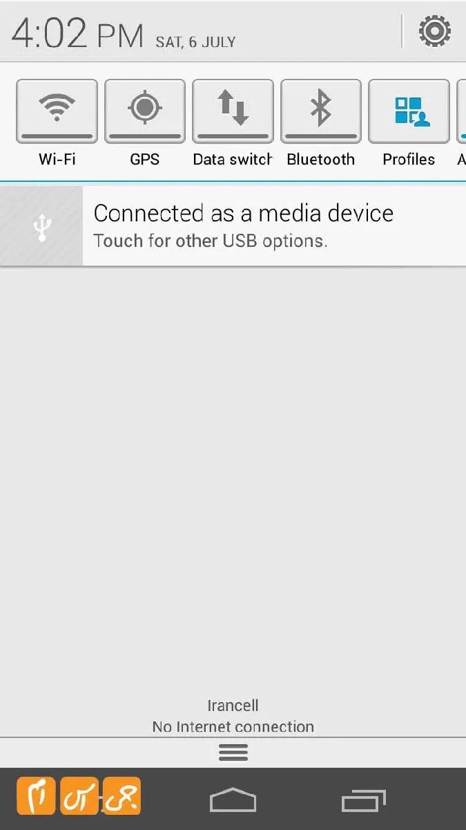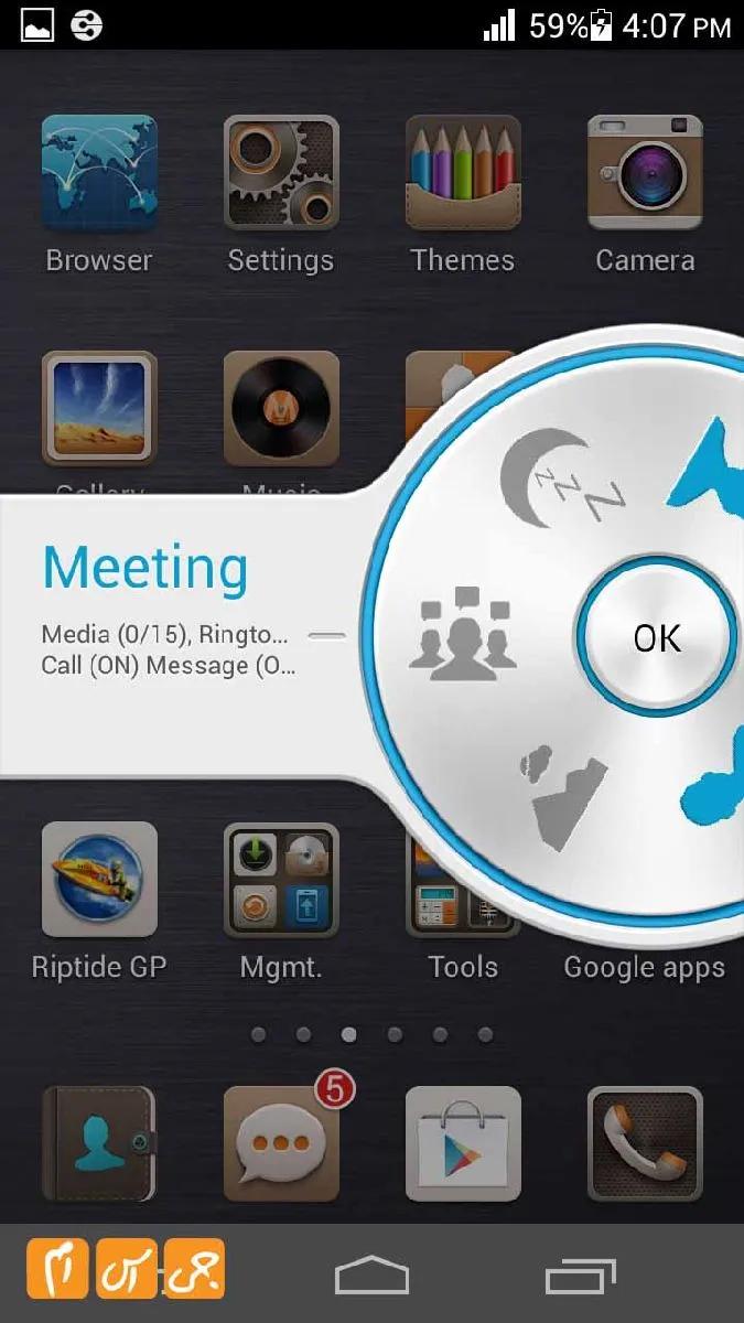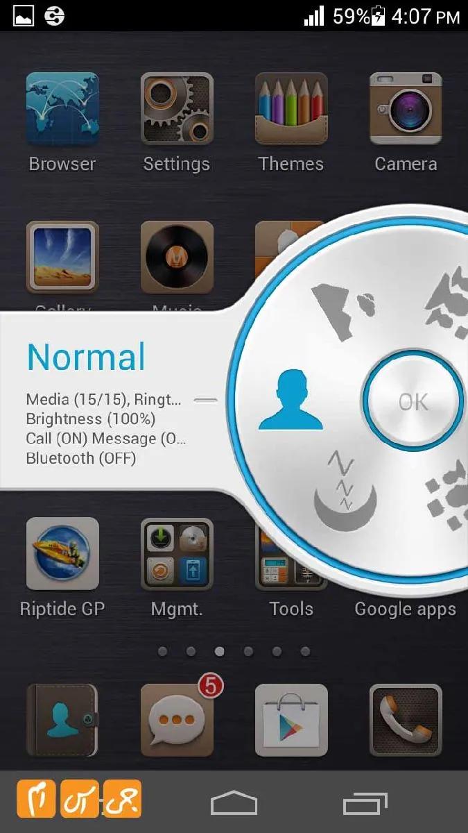 ناتیفیکیشن بار گوشی تمام و کمال است و تمام تنظیمات مورد نیاز را در آن پیدا خواهید کرد، گزینه جالبی در این قسمت دیده میشود که پروفایل نام دارد، با ضربه زدن بر روی این گزینه تنظیماتی مانند شکل زیر بر روی صفحه به وجود خواهد آمد که به راحتی میتوانید تنظیم کنید گوشی در چه جالتی از صدا قرار بگیرد این تنظیمات انیمیشن زیبایی دارد و مطمئن باشید شما را بسیار جذب خواهد کرد.
