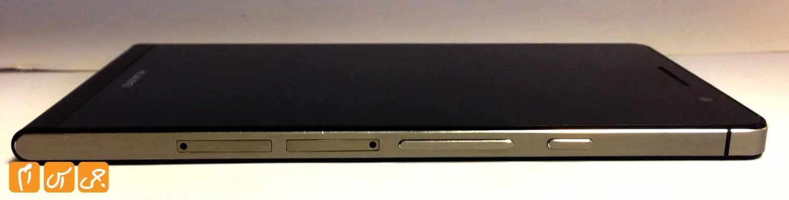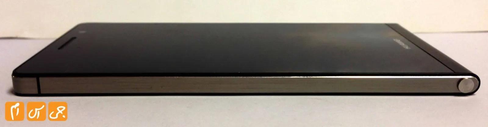 طراحی کناری گوشی شما را به یاد یکی از گوشیهای معروف دنیا می اندازد، کنارههای آلومینیومی گوشی دقیقا مانند آیفون 5 طراحی شده و اگر از کنار به گوشی نگاه کنید گویی در حال نگاه کردن به آیفون 5 هستید که کمی کشیده تر و نازک تر شده است. مشخصه اصلی این گوشی که هوآوی نیز بر روی آن بسیار مانور داد ضخامت بسیار کم گوشی است این گوشی تنها 6.2 میلیمتر ضخامت دارد که باعث میشود بتوانیم آن را نازک ترین گوشی دنیا بنامیم. گوشی حقیقتا ضخامت کمی دارد، در کنار این ضخامت کم، وزن این گوشی نیز 120 گرم است به شما اطمینان میدهیم که از دست گرفتن آن بسیار لذت خواهید برد و این گوشی را میتوان یکی از خوش دست ترین گوشیهای حال حاضر بازار نامید.