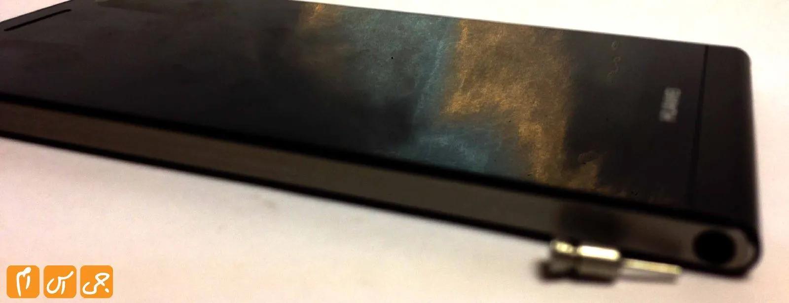 در سمت چپ گوشی نیز چیزی جز خروجی جک 3.5 میلیمتری صدا که توسط یک درپوش پوشیده شده است دیده نمیشود. این درپوش یک ویژگی جالب دارد و آن این است که در سر آن یک سوزن قرار گرفته که توسط آن می توانید درگاه سیسم کارت و کارت حافظه را خارج کنید.